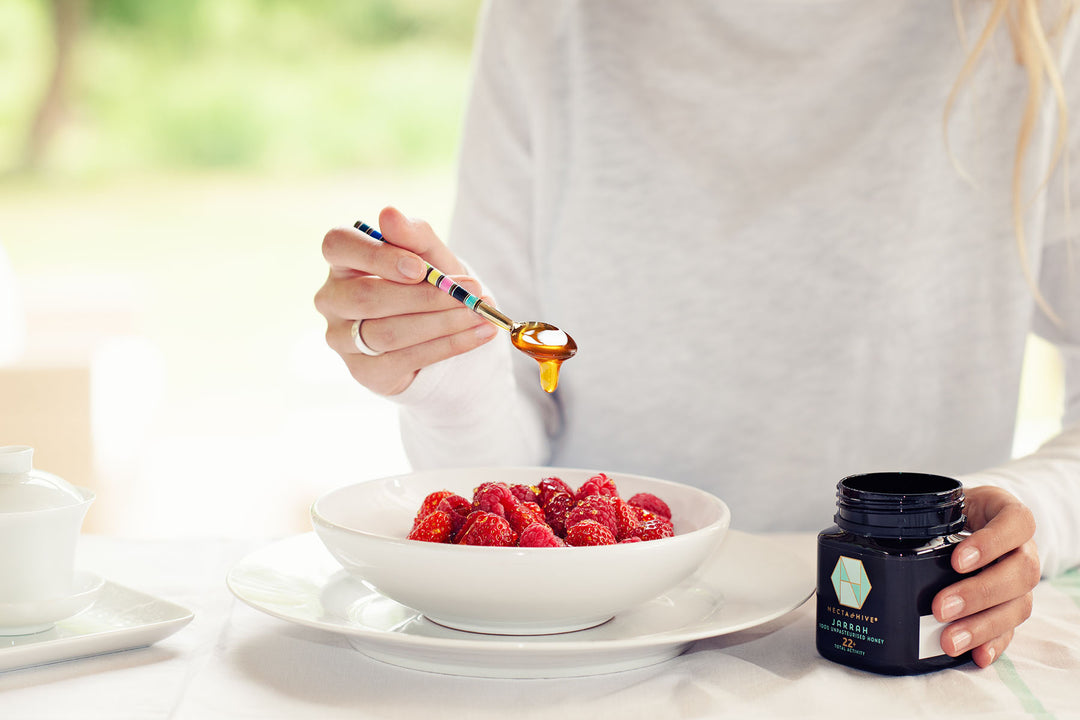 Eating active, healing honey every day helps to support a healthy immune system due to the rich antioxidant profile naturally present in high quality honey. This helps to build good defences against nasty cold, flu and stomach bugs. In fact, NICE, the National Institute for Health and Care Excellence, recommend antimicrobial honey as a first line treatment for sore throats, coughs and acute bronchitis.